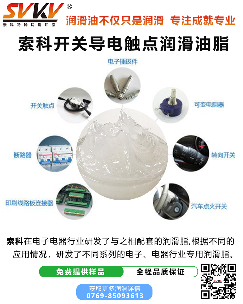 索科潤滑脂產品用于:航空、汽車零部件、電子、小家電、電動工具、光學儀器、美發器具、水族、玩具的各種主要零部件部位,索科擁有國際新技術,品牌產品已達1000多個品種、5000多個型號,能滿足在高溫、高負荷、高速、高阻力、低溫、潮濕、長壽命等極端工況應用。