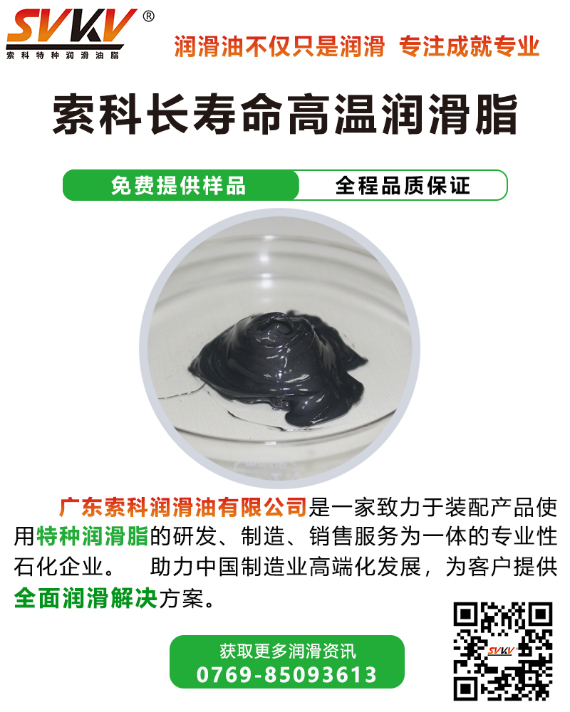 索科SVKV長壽命高溫潤滑脂是以優質基礎油,添加抗氧、抗磨、防銹等添加劑調制而成。