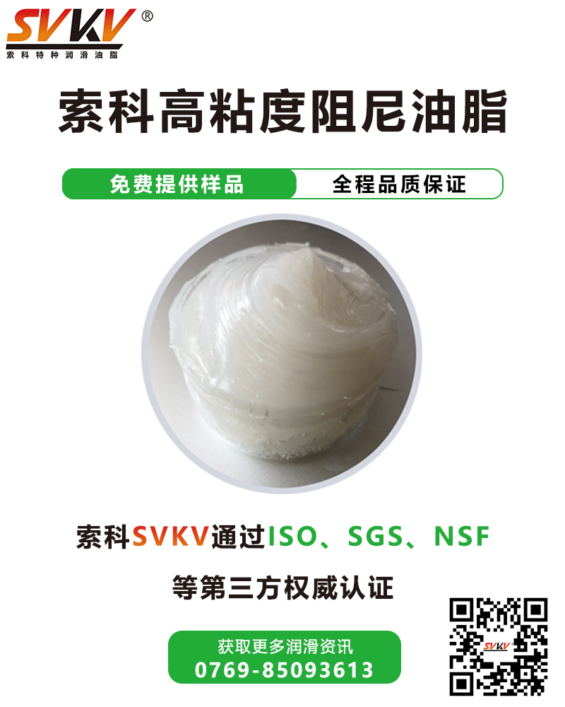 索科SVKV高粘度阻尼油脂是由高純度無機稠化劑和特殊合成油精制而成的阻尼油脂,無毒符合歐盟環保要求。索科SVKV高粘度阻尼油脂用于接合部件、允許較大間隙及公差,起到緩沖作用,讓部件順暢精準轉動。