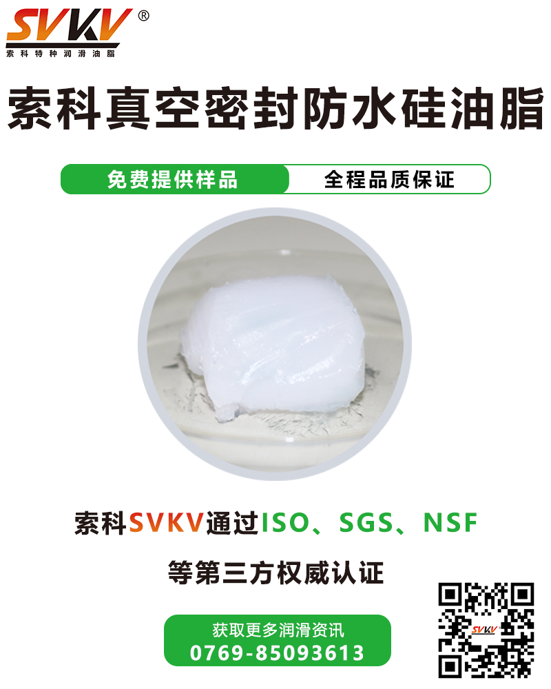 索科SVKV真空密封防水硅油脂是由精煉合成油作為基礎油稠無機稠化劑,并加有結構穩定劑、多種添加劑精制而成特種油脂,具有良好的防水密封性、防水、抗溶劑性和抗爬電性能,不腐蝕金屬,與橡膠多具有較好的適應性。