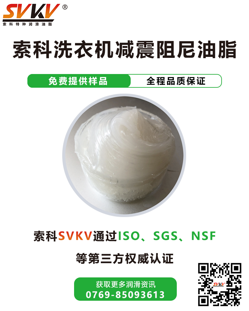 為了解決減震器噪音較大的問題,減震器用到的潤滑油脂就至關重要了。為此索科潤滑油生產了減震阻尼油脂,專為洗衣機減震器潤滑而用,能有效降低滾動軸承的噪音問題。