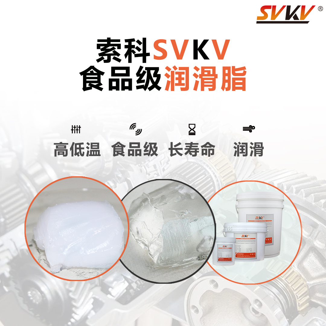 食品機(jī)械潤(rùn)滑脂就必須得用食品級(jí)潤(rùn)滑脂嗎?這是不一定的,主要看具體用在什么地方。如果是單獨(dú)的密封的傳動(dòng)部件,不直接而和食品及食品包裝接觸,是不需要用食品級(jí)的潤(rùn)滑油。如果運(yùn)動(dòng)部件可能與食品或者食品外包裝接觸,還是需要用食品級(jí)潤(rùn)滑脂。索科SVKV SK系列食品級(jí)潤(rùn)滑脂,通過美國(guó)食品級(jí)NSF H1認(rèn)證有效食品器械潤(rùn)滑需求。