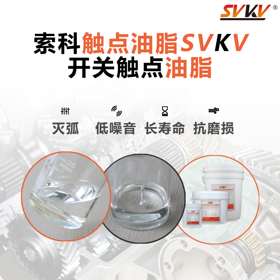 推薦索科SVKV SK909系列開關觸點油脂。專為電子電器的旋轉和滑動開關的防電弧、抗氧化、抗磨損和保護而設計,能有效降低接觸電阻和溫升,防止積碳的產生。