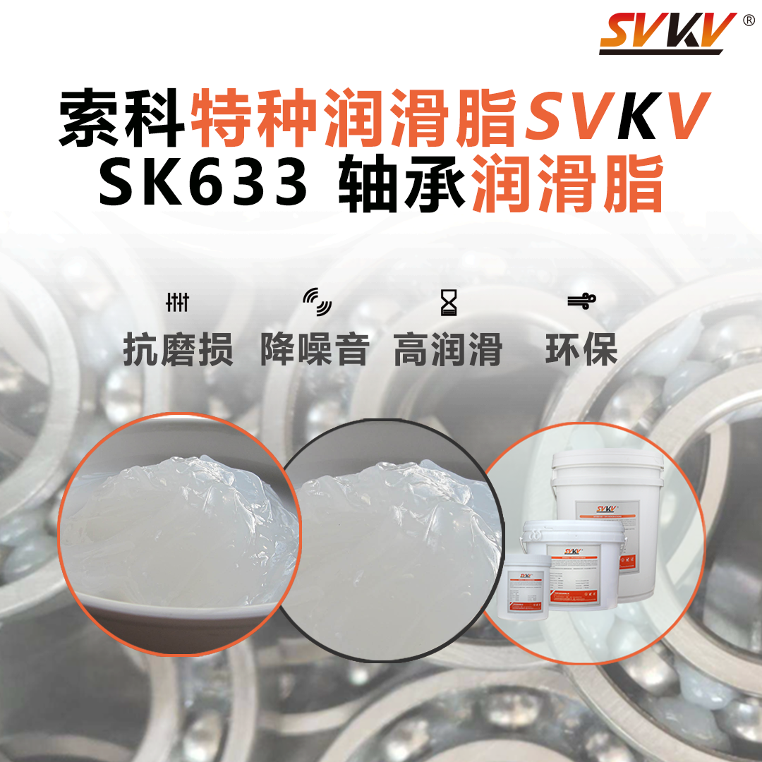 推薦索科SVKV SK633系列軸承潤滑脂。能夠在多種苛刻環境下保持潤滑效果,適用于各種高速軸承/低溫軸承、高負荷軸承或精密軸承。